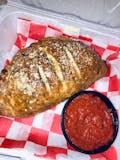 Pizza stuffed with cheese, pizza sauce & up to 3 toppings of your choice, and a side of pizza sauce.